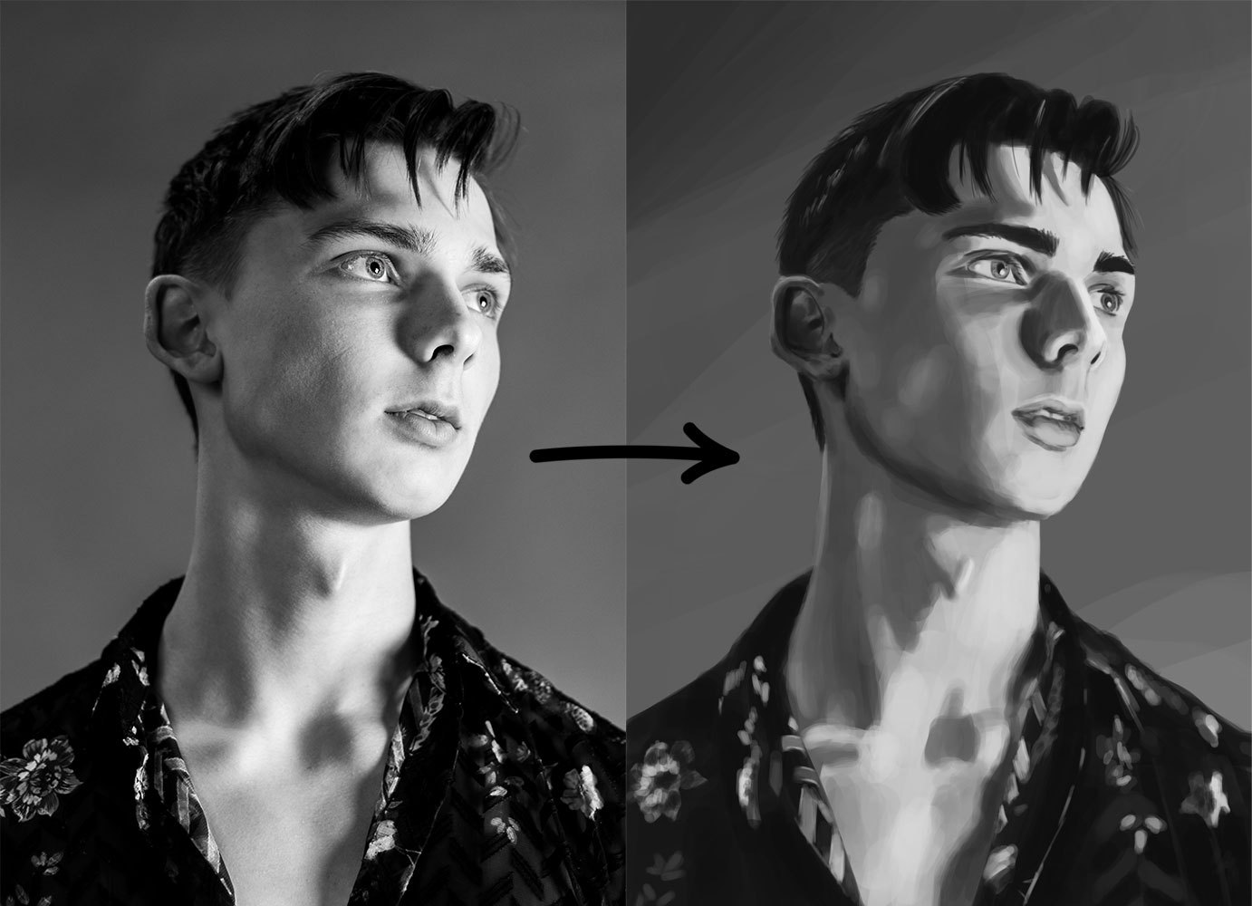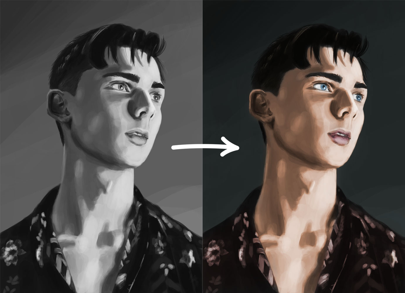 En bonus, je vous montrerai également comment coloriser un digital painting en niveaux de gris, et cela très facilement :